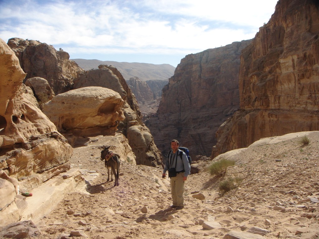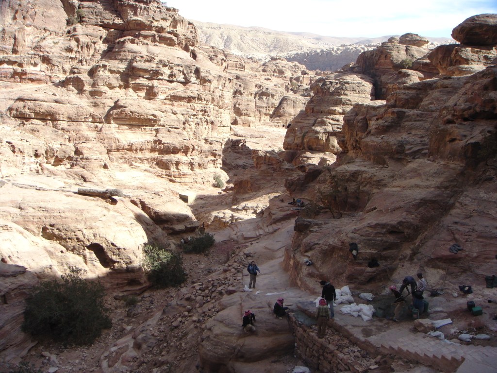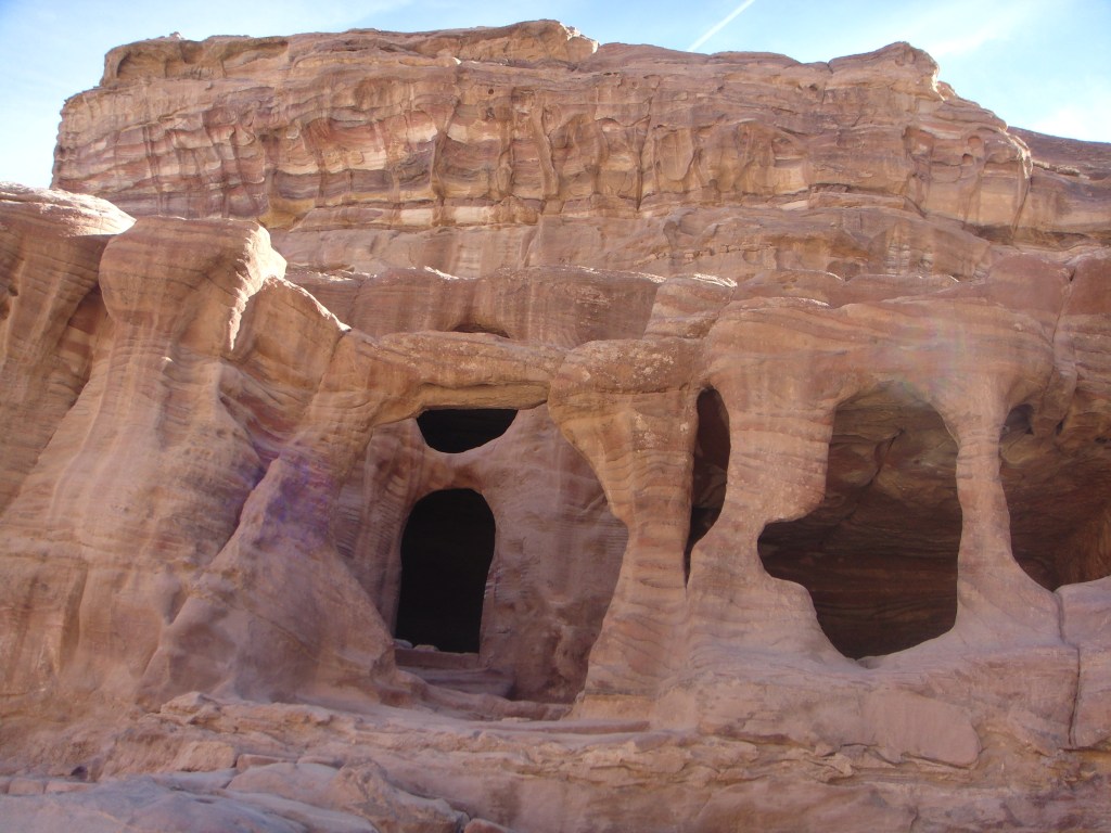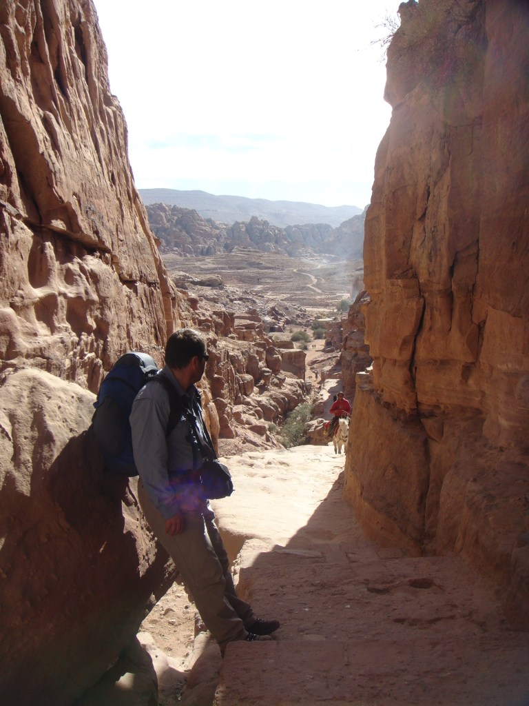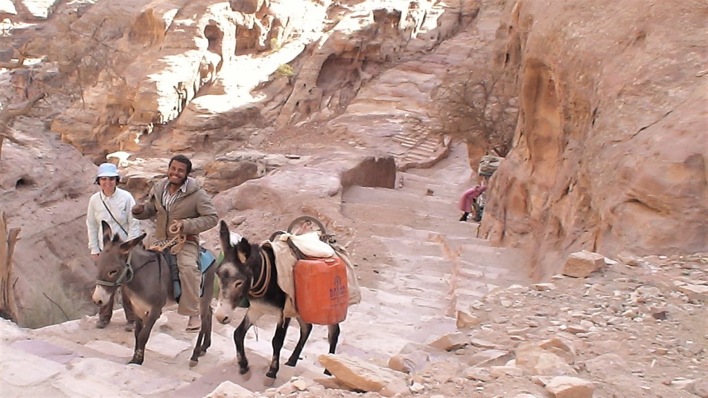 Petra için Ürdün’ün başkenti Amman’dan minibüs ile en yakın kasaba olan Wadi Musa’ya geldik. Burada temiz, güzel ve en ucuz otellerden birinde kaldık. Sabah güneş doğarken Petra’daydık ve çıktığımızda güneş batmıştı. Neredeyse hiç durmadan gezdik, keşfettik, bu muhteşem yerin tadını çıkardık. Giriş ücreti kişi başı günlük 50 Ürdün Dinarıydı (bugün yaklaşık 70 Dolar). O zaman için de pahalıydı ama bugün bizler için çok daha pahalı… Buradaki renkli kumlardan, değişik boylarda cam şişeler içerisine minik minik doldurarak, çok güzel çölü anlatan resimler yapıyorlar. Petra’nın büyüsüne kapılmış şekilde buradan ayrılıyoruz. Ertesi gün çölde gezeceğiz (Wadi Rum) ve akşam Akabe’deyiz.