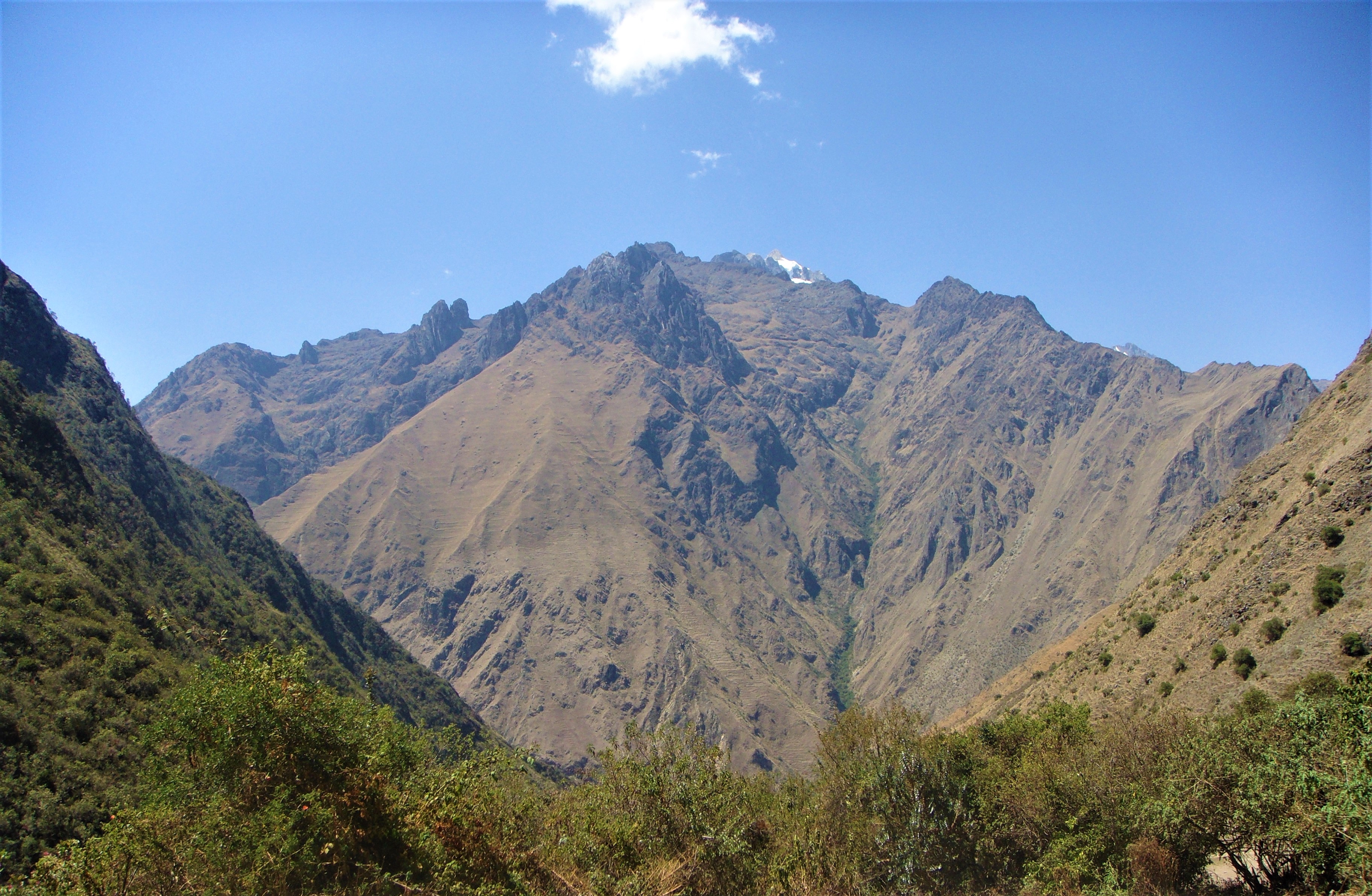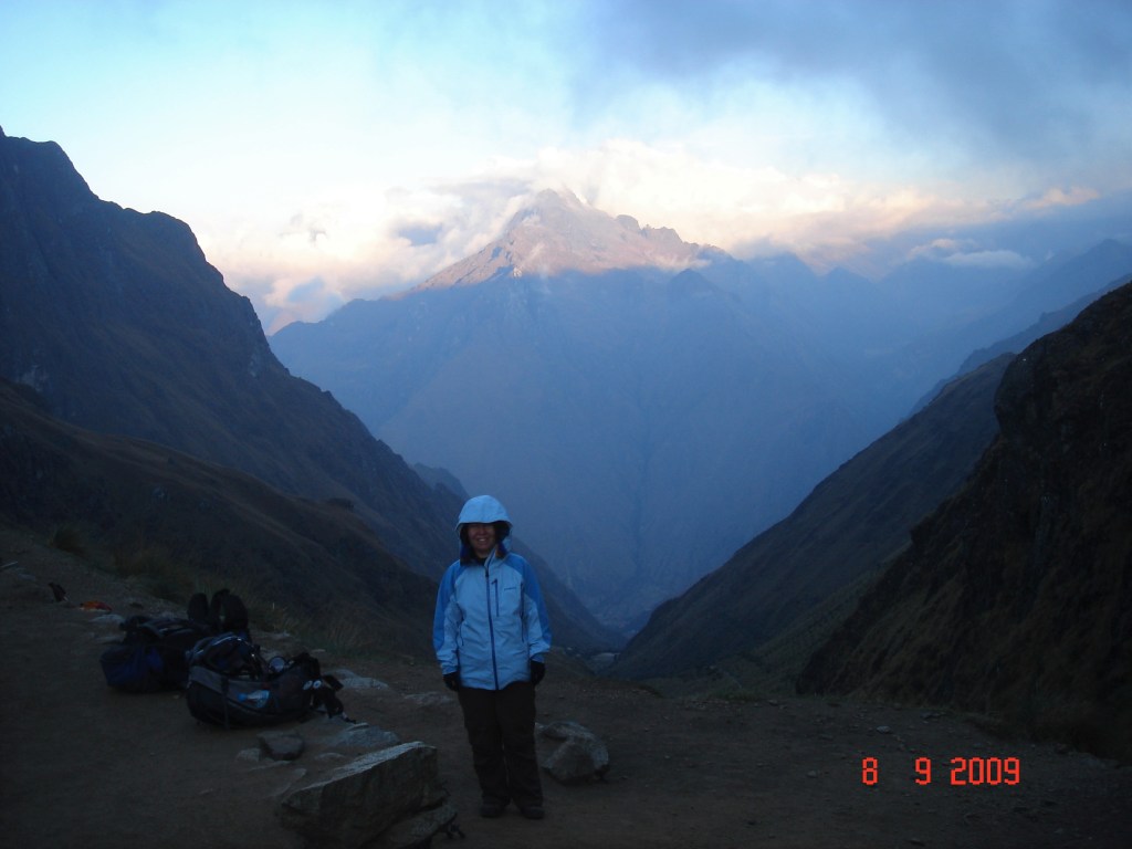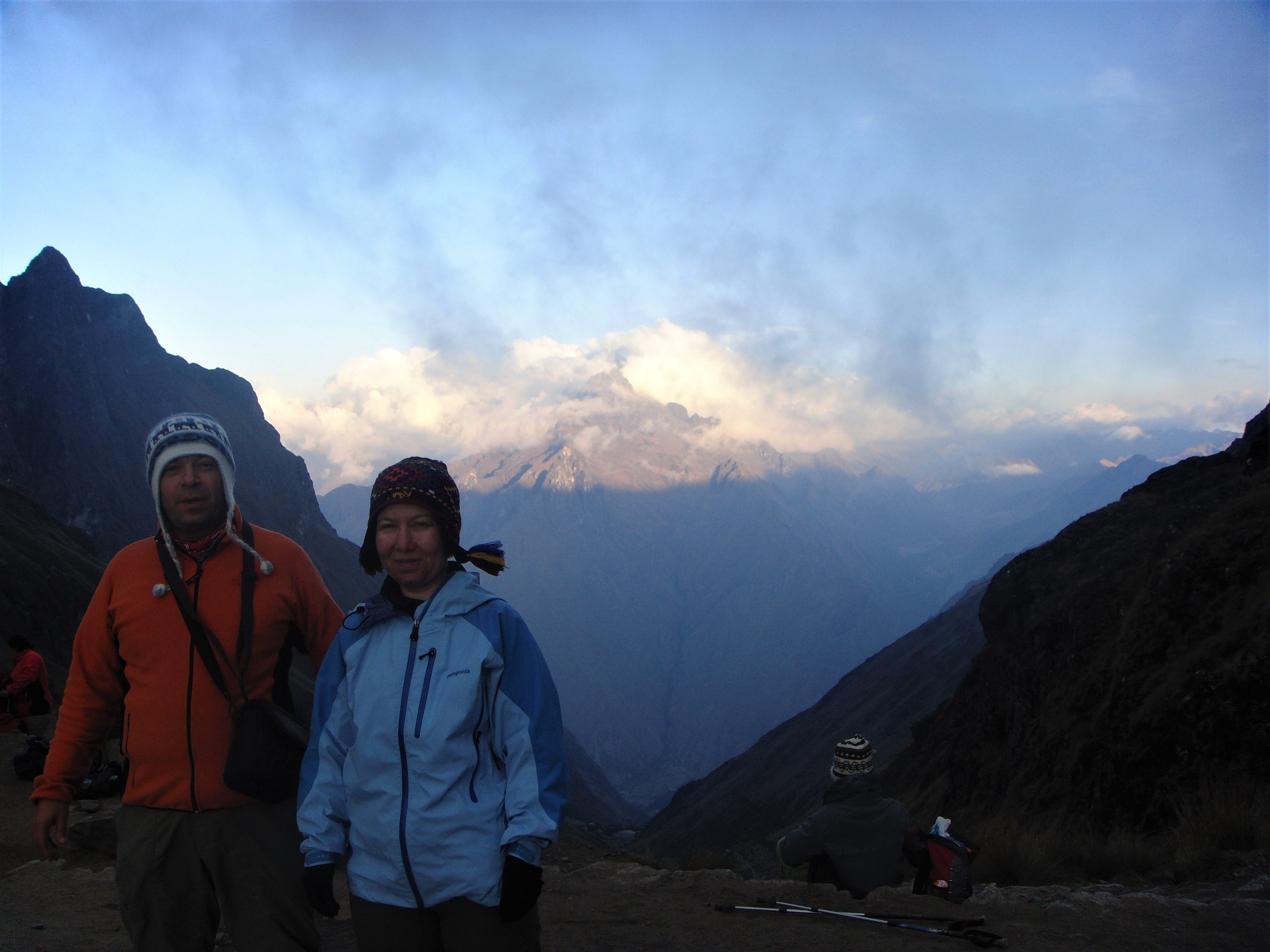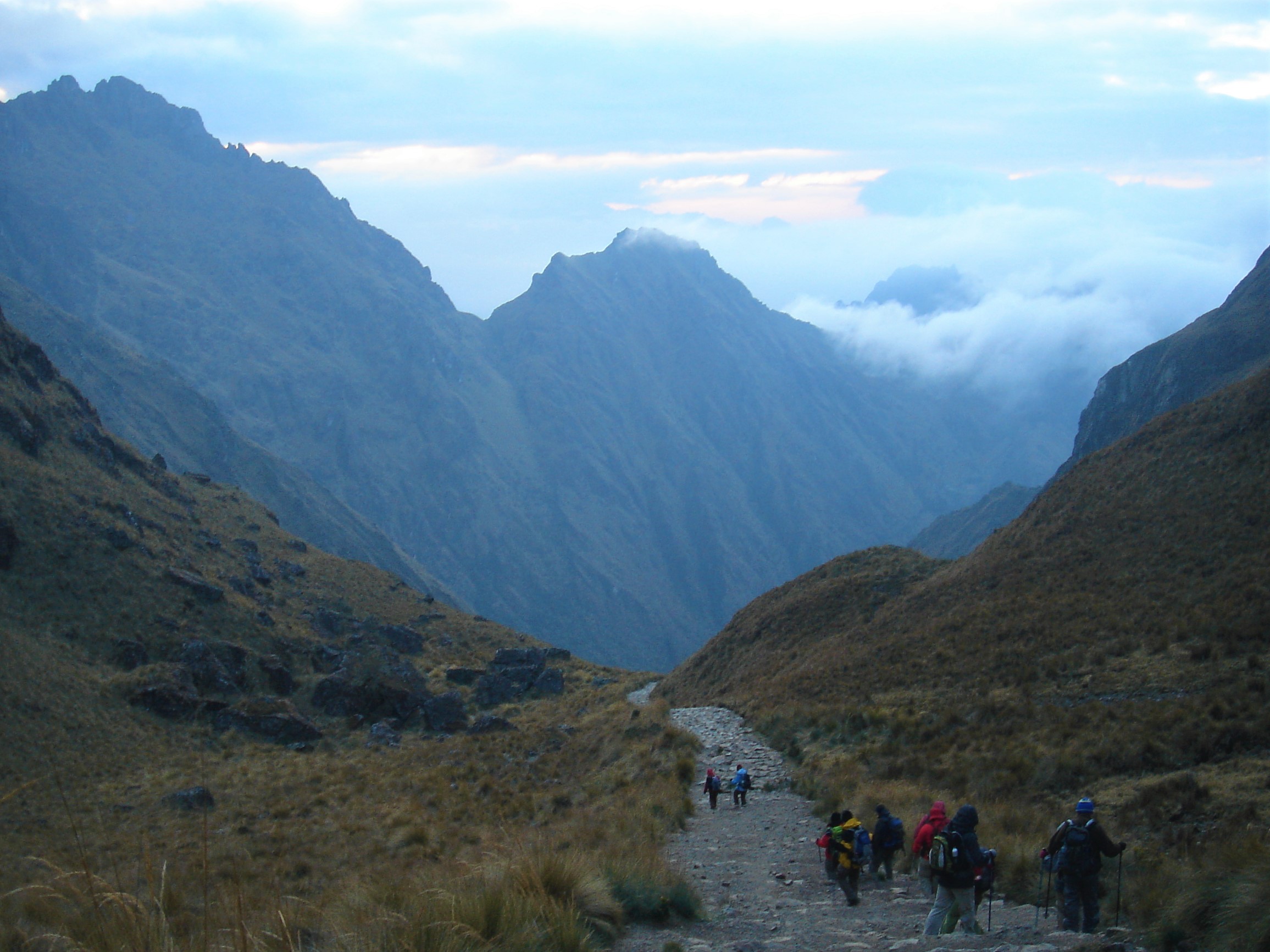 3 saatlik dik ağaçlık alandaki yürüyüş bizi ağaç ve çayırların sınır çizgisi olan Llulluchapampa ( 3680 m ) ya ulaştırıyor. Ardından, 1,5 saat daha yürüyerek yolun ilk ve en yüksek geçidine ( 4200 m ) ulaşıyoruz (Abra de Huarmihuanusca veya ‘Ölü Kadın Geçidi’). Tüm yolun bu en zorlu sayılan bölümünü geçince oldukça dik ama rahat bir patikayı takip ederek alçalmaya başlıyoruz. Vadinin sol yanından vadi yatağına ve aynı zamanda 2. gecemizi geçireceğimiz 3600 m yüksekteki Pacamayo kampına doğru iniyoruz.