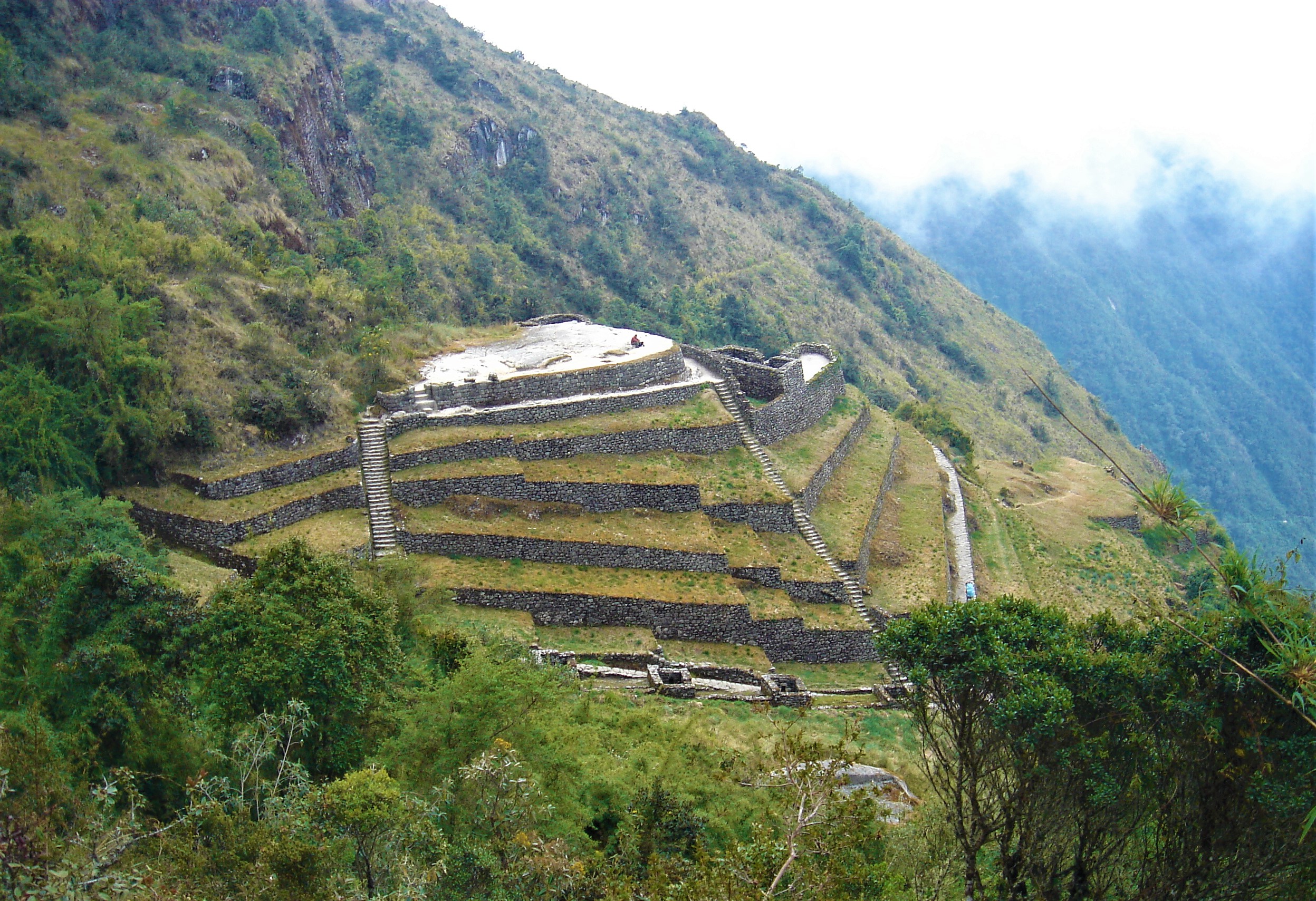 Ardından 45 dakikalık bir yürüyüş ile 4000 metredeki Abra de Runkuracay isimli ikinci geçide ulaşıyoruz. Bu yolun büyük bir kısmı hala orijinal halini koruyarak günümüze ulaşmış. Yürüyüşün bundan sonraki kısmı yer yer güzel manzaralarla dik uçurumlara bakan bentlerden geçiyor.