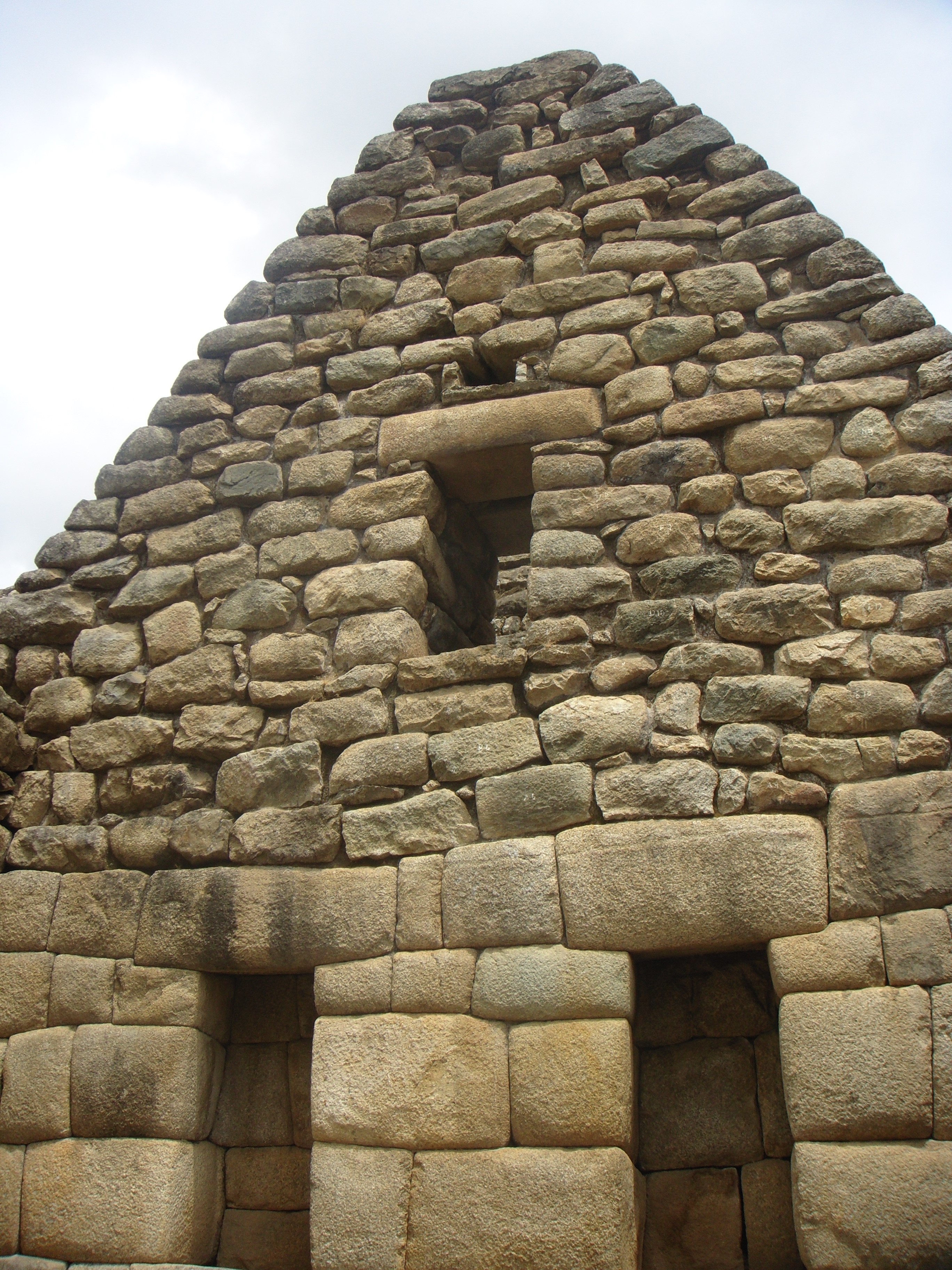 Machu Picchu’daki binaların büyük bir çoğunluğu İnka mimarisinin tipik inşa metodu olan taş duvarcılığıyla inşa edilmiştir. Bu yöntemde yontularak düzeltilmiş taşlar blok halinde birbirlerine, aralarında harç olmadan birleştirilmişlerdir.