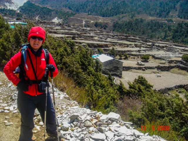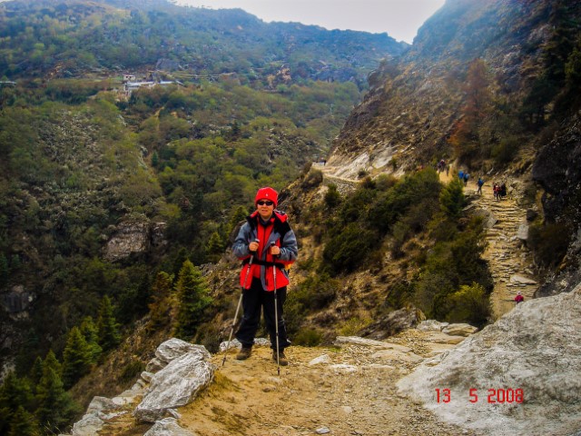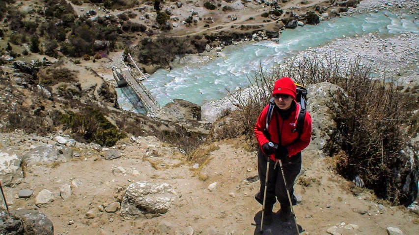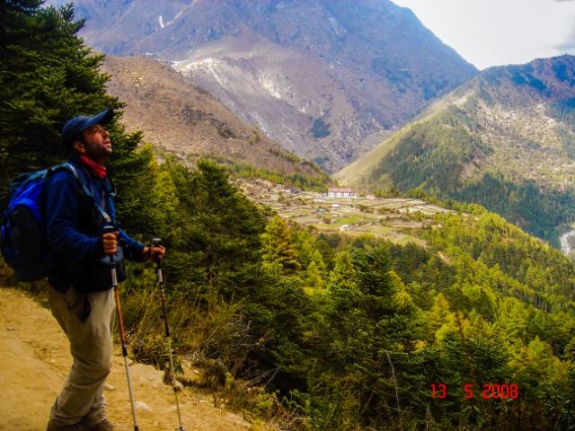 Sabah Namche Bazaara doğru iki günde yürüdüğümüz yolu bir günde geri dönüyoruz. Gelirken bir gece kaldığımız Tenhboche’de öğlen yemeğini yedikten sonra acele etmeden bol bol fotoğraf/video çekerek yola devam ediyoruz. Artık yüksek zirvelere veda etme zamanı, ilerledikçe teker teker görüş alanımızdan çıkacaklar. En son Namche Bazaar’a varmak üzereyken, arkamızı geldiğimiz yöne dönüp, bize sürekli eşlik eden, en güzel dağlardan biri olan Ama Dablam’la ve kısacık bir sürede olsa bulutların arasından kendini gösteren Everest’le vedalaşıyoruz.