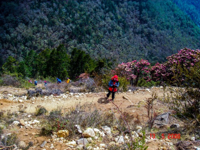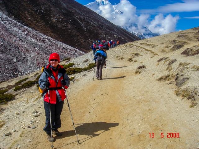 Uzun ve yorucu bir günden sonra ertesi gün hala elimiz yüzümüz şiş ama mutlu bir şekilde uyanıyoruz. Buradan sonra gurubun bir kısmı ile rehberlerden ve taşıyıcılardan bazıları Island Peak (6189 m) olarak bilinen Imja Tse’ye doğru zirve denemesi için bizden ayrılıyorlar, onlara başarılar dileyerek vedalaşıyoruz. Bu zirve 1953 yılında İngiliz Everest Dağı seferi üyeleri tarafından Island Peak olarak adlandırılmış, çünkü Dingboche’den bakıldığında buz denizinde bir ada gibi görünüyor. Daha sonra zirve 1983 yılında Imja Tse olarak yeniden adlandırılmış fakat Island Peak adı popüler bir seçim olmaya devam etmiş. Zirve aslında Lhotse Shar’ın güney ucundan çıkan sırtın bir uzantısı. Bu zirve buraya gelip de, bir de 6000 metre üzerini denemek isteyenler için en iyi seçeneklerden birisi. Buraya çıkmak için, bu zirvenin son kısımları buzul tırmanışı da içerdiğinden, tırmanıcıların kazma, krampon, ip kullanma tecrübelerinin olması gerekiyor. Bizim daha önce hiç yüksek irtifa tecrübemiz olmadığından, bedenimizin yüksekliğe tepkisini hiç deneyimlemediğimizden, bu yürüyüşü bile tamamlayıp tamamlayamayacağımızı kestiremediğimizden, Island Peak zirvesini denemeyi düşünmedik.