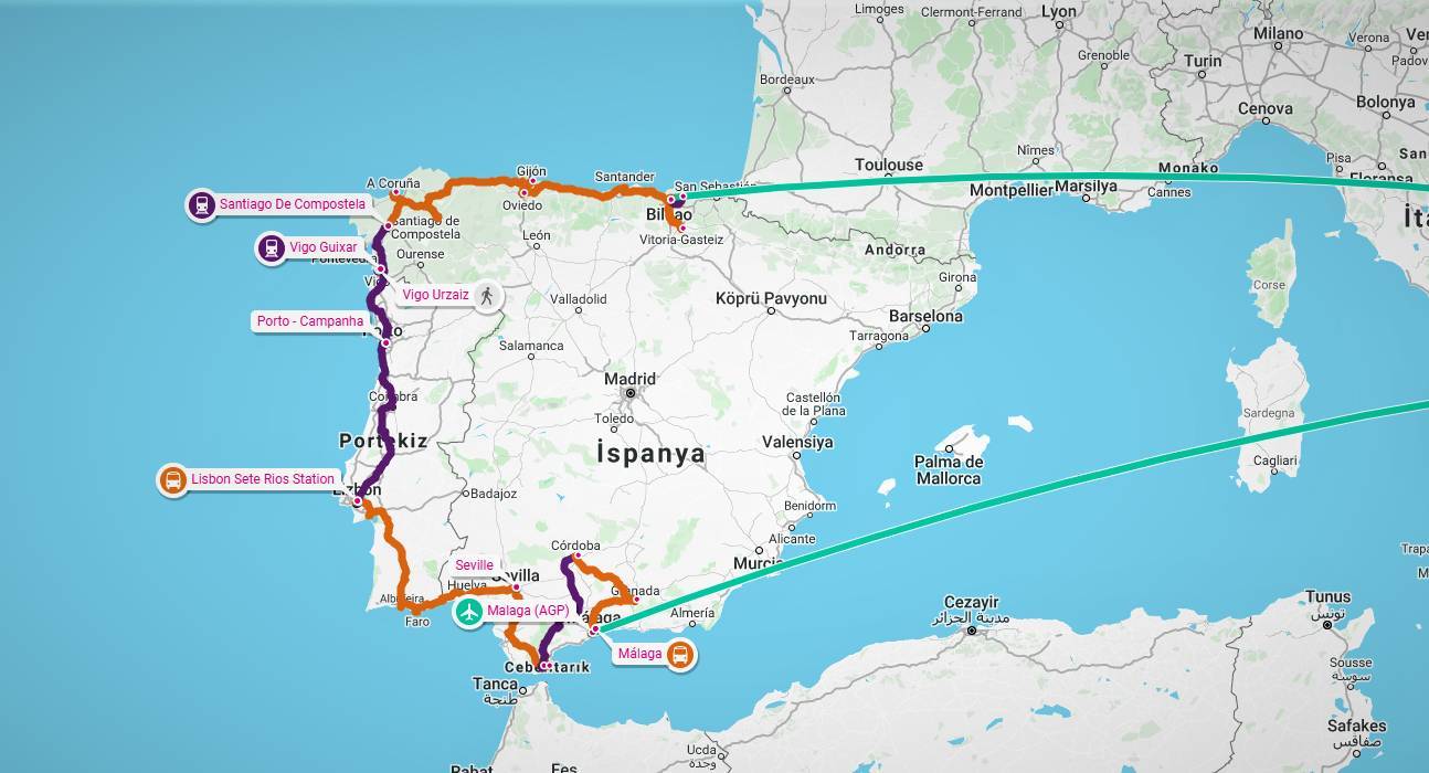 Bilbao’da Vizcaya köprüsünden geçip, Guernica’da meşe ağacının altında dinlenip, Picasso’nun Guernica’sını izleyip, yeryüzünün birgün insan şeklindeki canavarlardan kurtulmasını dileyip, Bask’ların başkenti Vitoria-Gasteiz’in meydanlarını sokaklarını gezip, Asturias’ın başkenti Oviedo’da dolaşırken kendilerini bir maratonda koşarken bulmuşlar, Gijon’da denizin dalgalarını izlerken hayal kurmuşlar, A Coruna’da Herkül kulesine tırmanmışlar, Camino de Santiago ya da St.James Yolu denilen, hacı yolunun sonu olan Galiçya’nın başkenti Santiago de Compostela’da yorgun hacılarla karşılaşmışlar, Porto’da bir akşam vakti martılar karşılamış onları, sokaklarda fado dinlemişler, tabii Porto şarabının da tadına bakmadan geçmemişler, yedi tepeli Lizbon’da batının en batısına, Cabo da Roca’ya gitmişler, Belem’i gezmişler ve muhteşem Belem tatlısını denemişler, 28 numaralı sarı tramvayla şehri turlarken başları dönmüş, sonra güneyin sıcağına yolculuk başlamış ve nisan ayına girerken Endülüsün başkenti portakal kokulu Seville’ya varmışlar, Paskalya bayramını, kukuletalı bayram kutlamalarını, sıcağı ve coşkuyu yaşamışlar, Algeciras’dan Britanya denizaşırı topraklarına vizesiz, mühürsüz geçmiş, Afrika kıtasına el sallayarak, Akdeniz ile Atlas okyanusu arasındaki Cebelitarık kayasına tırmanmışlar, hırsız maymunlar tarafından gasp edilmiş fakat en güzel manzaraları seyretmişler, Cordoba’nın beyaz, sıcak sokaklarında Paskalya bayramı kalabalığına karışıp, Flamenko’nun büyüsüne kapılmışlar, Granada da El Hamra sarayını gezmiş, insanoğlunun yaptığı güzelliklere hayran olmuşlar, Malaga da tepelere tırmanmış, Picasso’nun çocukluğunda oynadığı sokaklarda dolaşmışlar ve Akdenizin sıcak kumlarında dinlenmişler.