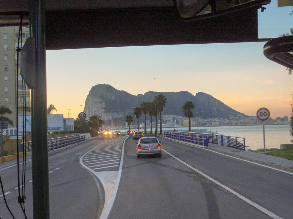 Akşam Sevilla’dan Algeciras’a geldiğimizde son kez kontrol ettik ve yeşil pasaportla girebileceğimizi görerek, web sayfasını telefonlarımıza kaydettik. Yeşil pasaportu olmayan iki arkadaşımızı Algeciras’da bırakarak, sabah çok erken ilk otobüsle, buraya en yakın İspanya kasabası La Linea’ya doğru yola çıktık. La Linea’da birşeyler atıştırdıktan sonra yürüyerek sınıra geldik.