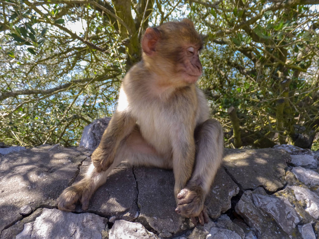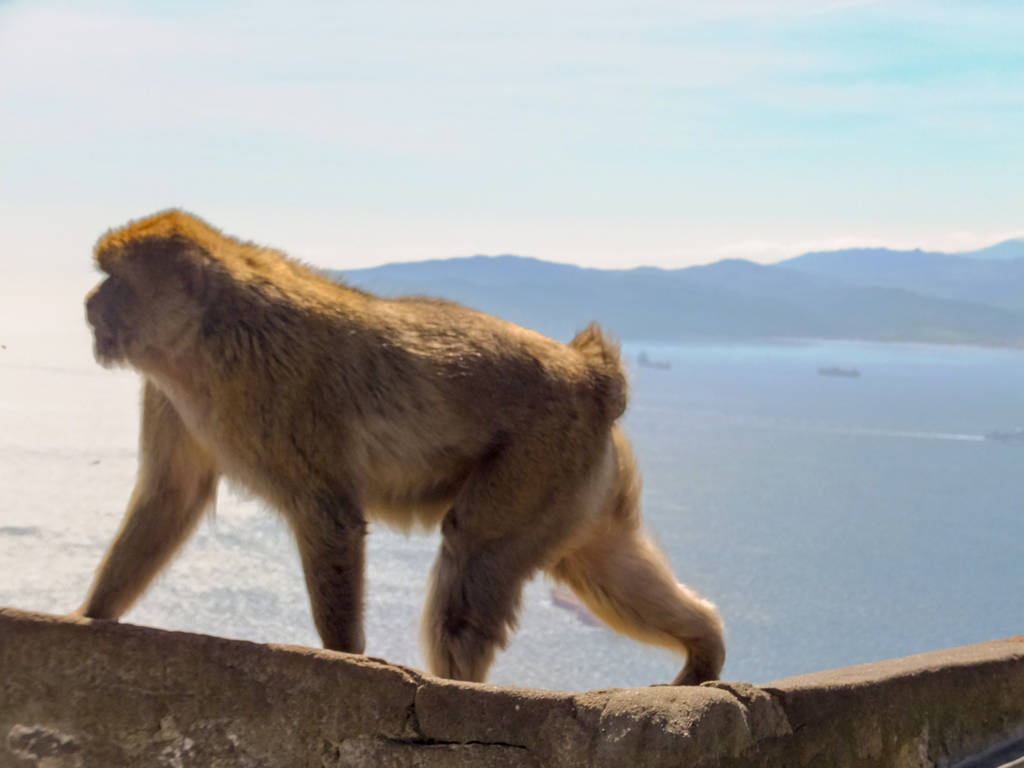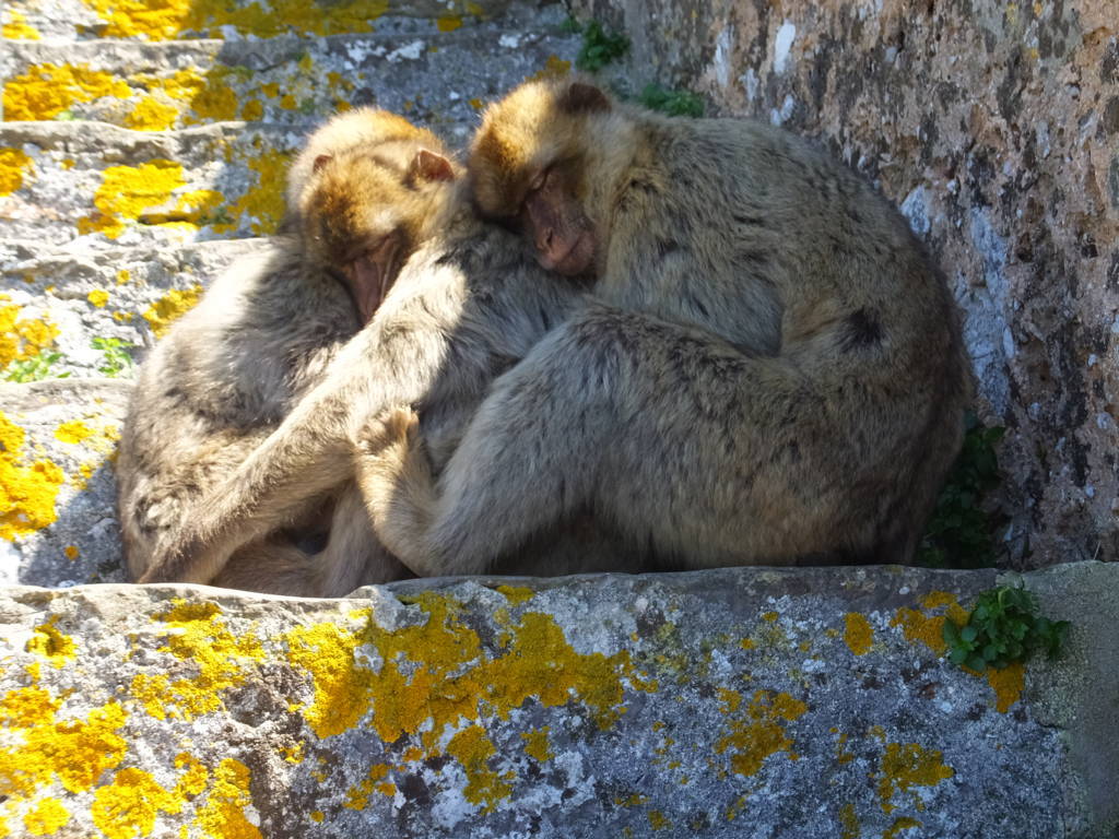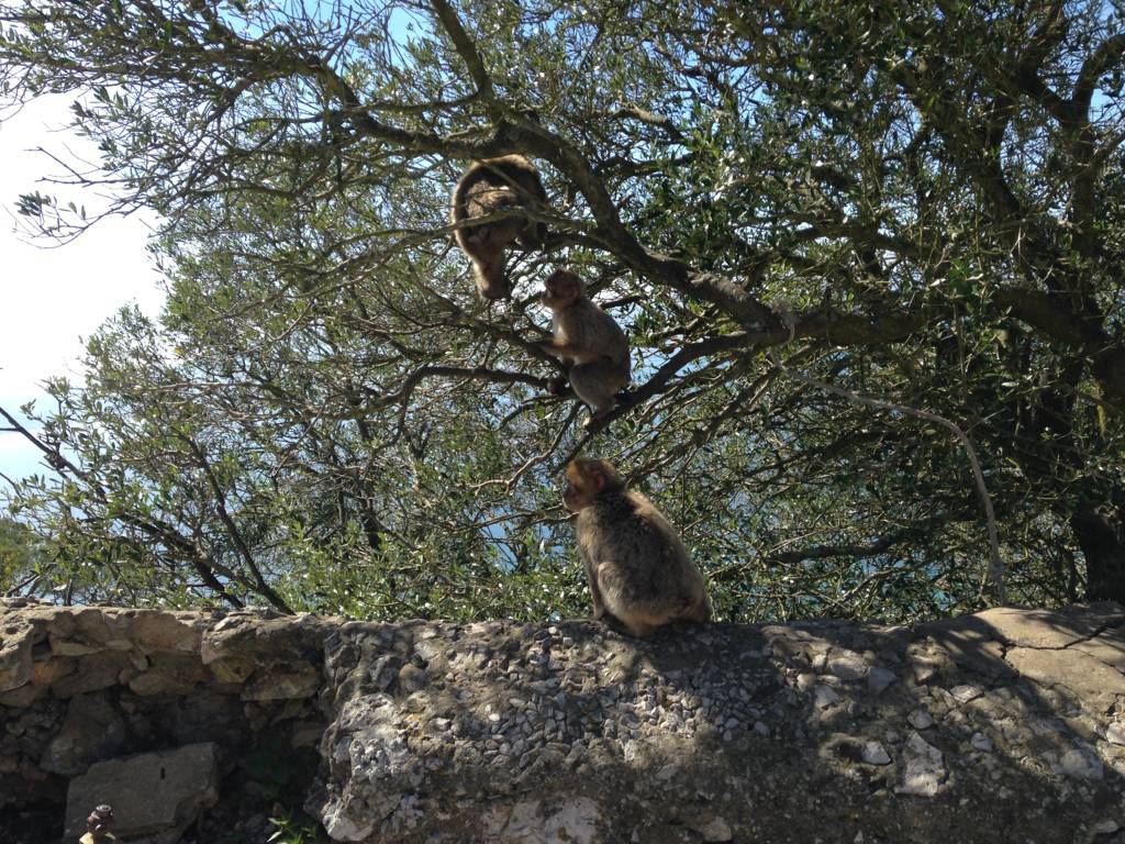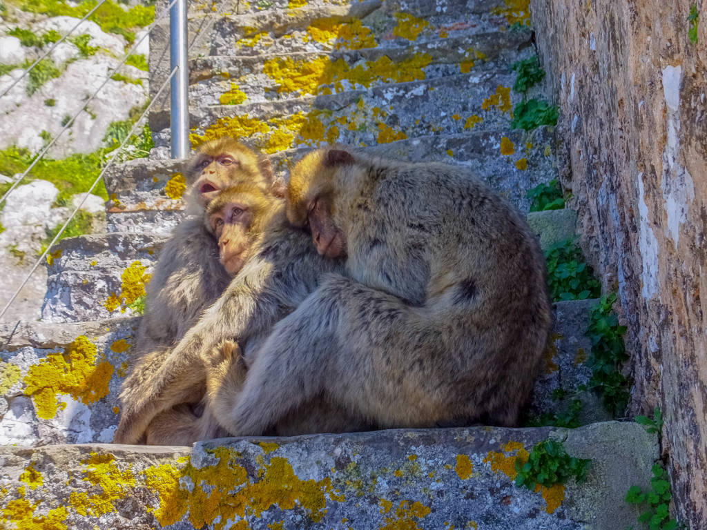 Tünellerden sonra kayanın yukarısına doğru çıkan dar ve dik merdivenleri tırmanırken bir garip engelle karşılaştık. Maymunlar daracık merdivenlerin üstüne oturmuşlar ve geçmek istediğinizde dişlerini göstererek hırlıyorlar. Biraz bekledikten sonra yavaşça yanlarından geçiyoruz. Bunlar, anavatanları Cezayir ve Fas’da bulunan Atlas dağları olan, Berberi şebeği (Macaca sylvanus) denilen, bir maymun türüdür. Avrupa’da yaşayan tek özgür primatlardır. Cebelitarık’ın Berberi şebeği popülasyonu, Kuzey Afrika dışındaki bu türe ait tek popülasyondur ve Avrupa’daki tek yabani maymun popülasyonudur. Muhtemelen Cebelitarık’a sonradan gelmişler. Yavrular çok sevimli ama büyükler dişlerini de gösterince çok korkutucu olabiliyor. Aynı zamanda da usta hırsızlar. Dünyanın başka yerlerinde de olduğu gibi, insanlarla özellikle turistlerle yakın temasta olan hayvanlar, hazır gıdaya alıştığından, burada olduğu gibi hoş olmayan durumlar oluşabiliyor. Elinizde poşet falan olursa kapıp kaçabilirler, çantanız açıksa içindekileri alıp gidebilirler, telefonu, fotoğraf makinesini kapabilirler, uçurumdan atabilirler, sizi ısırabilirler ya da benim gibi hayvanların tehdit olarak görmediği biriyseniz üstünüze atlayıp, ceplerinizi yoklayıp, mendilinizi yiyecek zannederek alıp kaçabilirler!!! Evet bir maymun tarafından gasp edildim. Seyahat konusunda çok tecrübesi olan, bu hırsız maymunlar hakkında da gelmeden önce epeyce bilgi sahibi olan ve tedbirli davranan biri olarak bu da değişik bir tecrübe oldu :). Taşın üzerinde havuç yiyen bir yavrunun fotoğrafını çekiyoruz, sonra Şükrü biraz daha yaklaş sizi birlikte çekeyim falan derken, cebimdeki mendil paketini fark etmiş galiba ufaklık. Hiç çekinmeden üstüme atladı ve usta bir yankesici olarak ceplerimi yokladı ve mendilimi alıp kaçtı. Bu sırada ne yapacağını bilemediğimden, ben ellerimi yukarı kaldırdım ve yüzümü korumaya çalıştım. Burada başınıza gelebilecek en kötü şey uçurumdan düşmekse ikincisi de bu maymunlar tarafından ısırılmaktır. Isırılmanın bedeli ise uzun sürecek aşı vb. tıbbi prosedürler nedeniyle seyahatinizin aksaması olacaktır. Neyse ki olay sadece hırsızlıktı ve suçlu kaçtı. Bu sırada Şükrü çantadan su çıkarıp verdi bana ve çantanın yan gözünü kapatmayı unuttu. Yola devam ettik ve bir taraftan güzel manzaranın tadını çıkarırken bir taraftan da etrafımızda bizi izleyen maymunları kolluyorduk. Artık onlara alışmaya başladık ve varlıklarını bir an unutup eğlenirken ikinci hırsızlık olayı yaşandı. Şükrü’nün sırtındaki çantanın açık kalan gözünden el çabukluğuyla yarım kalmış bir çubuk kraker paketi aşırdılar. Bu kadarı da fazla derken bir baktık birinin fotoğraf makinesini açık çantasından almaya çalışıyorlar, neyse ki son anda çevredekilerin uyarısıyla kurtardılar. Yarım bir mendil paketi ve çubuk krakerle atlattık ama bizde onların fotoğraflarını çektik :).