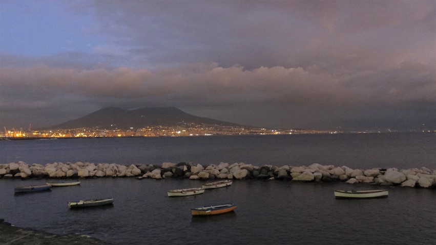 Daha önce üzerinden uçtuğumuz ve uçaktan hayranlıkla seyrettiğimiz anakara Avrupa’daki tek aktif yanardağı Vezüv’ü bu kez karşısından seyredecek, bu öfkeli canavarın yuttuğu güzelim şehirleri ve sanki hala gündelik hayatına devam eden taşlaşmış insanlar ve onların ruhları arasında gezecek, dumanı tüten dağın zirvesinden nefis manzaraya dalacaktık.