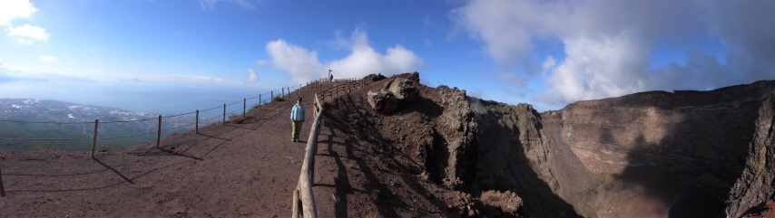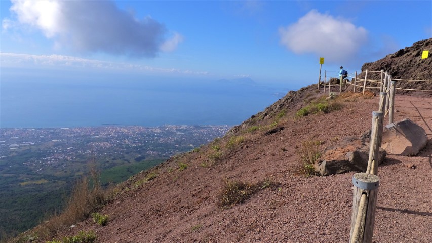 Vezüv yanardağı 5 Haziran 1995’te milli park ilan edilmiş, zirvenin 200 m aşağısına dek karayoluyla ulaşmak ve yaya olarak zirveye tırmanmak mümkün. Vezüve ulaşmak için Napoli istasyonundan bölgesel trenine binip Ercolano istasyonunda inip sonra da minübüse bindik. Dönüşte tren istasyonuna çok yakın olan Ercolano kazı alanını (Herculaneum) gezip Pompeii’ye trenle devam ettik, güneşi Pompeii de batırdıktan sonra trenle Napoli’ye geri döndük.